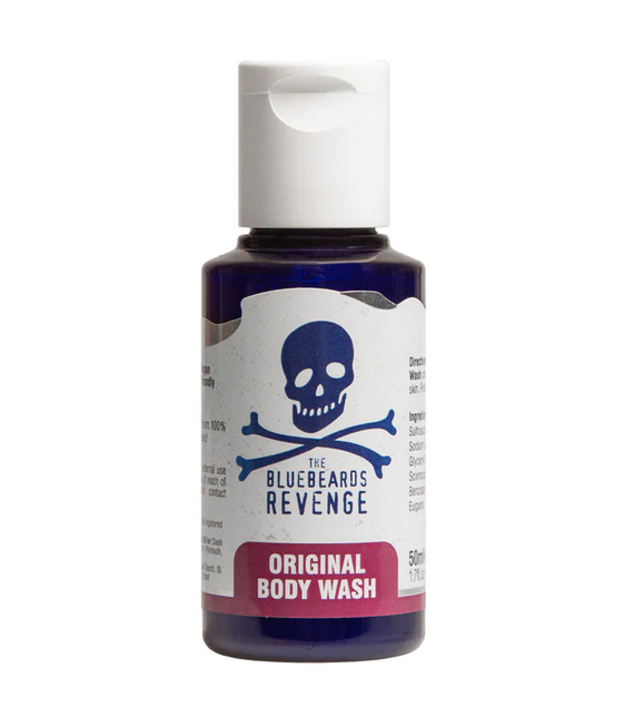 Cestovní balení sprchového gelu Bluebeards Revenge pro svěží a čistou pokožku. Receptura určená speciálně pro muže. Okamžitě pění a do hloubky čistí pokožku od potu a nečistot. Obsažený marulový olej dlouhodobě hydratuje a posiluje pokožku. S vůní připomínající osvěžující závan mořského vánku. Bez sulfátů a parabenů. Objem 50 ml.