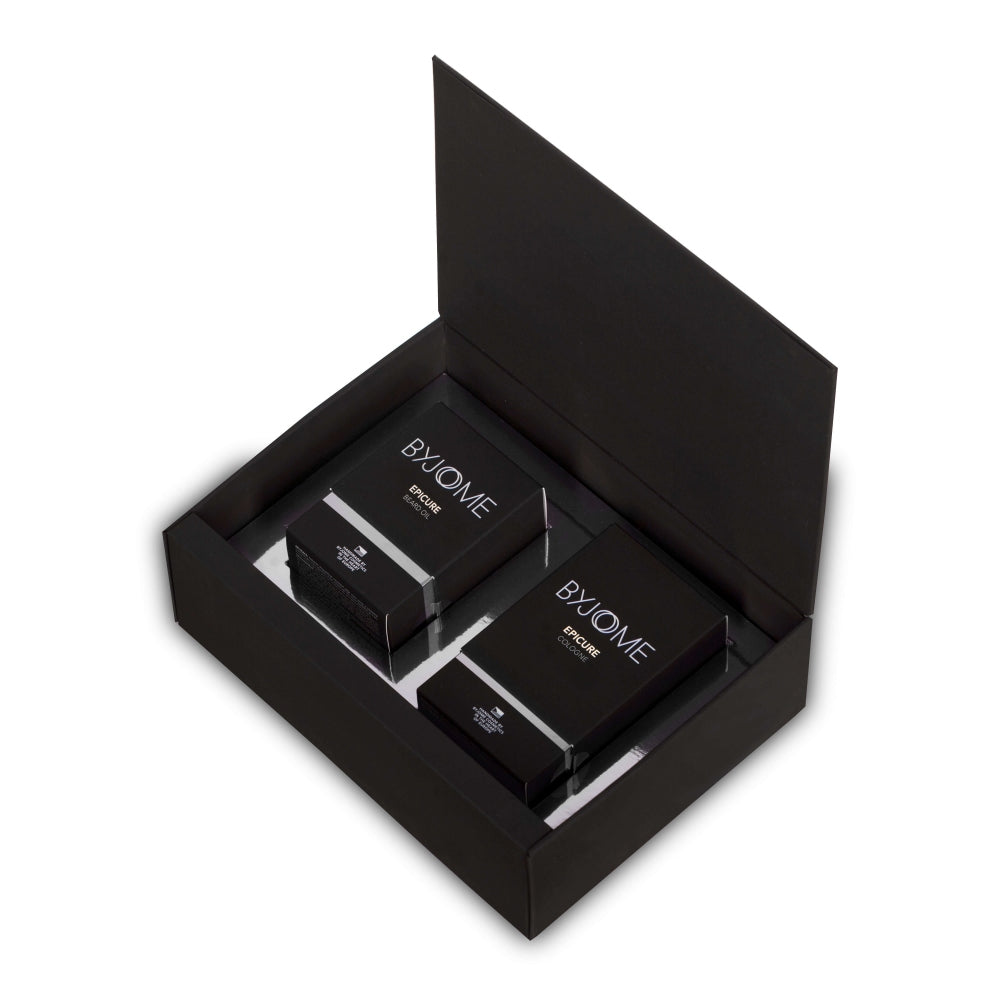Dárková sada Byjome s olejem na vousy a kolínskou se svěží citrusovo-dřevitou vůní Epicure. Olej na vousy (30 ml) díky směsi přírodních olejů vousy vyživý, změkčí a hydratuje i pokožku pod vousy. Kolínská (100 ml) se hodí pro aktivního muže. Lze použít také po holení - uklidňuje a dezinfikuje kůži podrážděnou holením. Dodáváno v luxusní dárkové krabičce s magnetickým zavíráním. Vyrobeno v České republice.