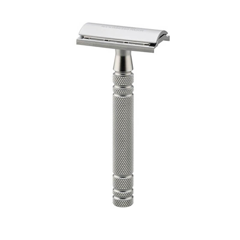 Holicí strojek Feather AS-D2S je mnohými hodnocený jako nejlepší holicí strojek na světě. Je vyrobený z nerezové ocele v nekompromisní nejvyšší kvalitě, potažený nikl-chromovou vrstvou v matné úpravě. Perfektní přesnost a příkladná rovnováha. Matný stříbrný povlak, který zabraňuje otiskům prstů a skvrnám po vodním kameni. Protiskluzová rukojeť má tloušťku 11 mm. Díky plné liště je vhodný pro každodenní holení. Délka strojku je 10 cm a váha je 90g. Strojek je dodávaný s balením žiletek Feather (5 ks) v krásné dárkové krabičce.