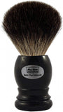 Štětka na holení s černou plastovou rukojetí a s jezevčími vlasy Pure Badger. Vyrobeno v Německu.