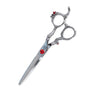 Kadeřnické nůžky Kanpeki Serpent v délce 6 palců jsou vyrobeny z velmi kvalitní japonské nerezové ocele. Zdobené motivem draka a červeným kamínkem. Díky tenké, lehké čepeli je většina váhy na rukojeti. Výborné pro texturování a bodové stříhání. Špička je užší, aby umožňovala střih i kolem citlivých oblastí kolem ucha nebo krku. Dlouhá a úzká čepel zaručuje rovný střih a je vhodná pro stříhání přes hřeben.