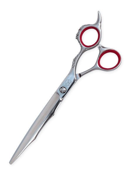 Kadeřnické nůžky Kanpeki Skull v délce 7 palců jsou vyrobeny z velmi kvalitní japonské nerezové ocele. Mají jedinečný a nápaditý design s motivem lebky. Doplňky jsou v červené barvě. Dlouhá a úzká čepel zaručuje rovný střih a je ideální pro stříhání přes hřeben.