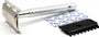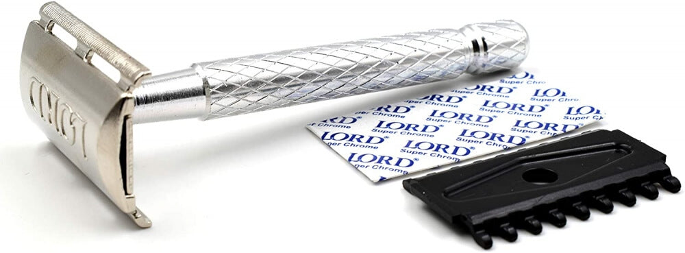 Kovový holicí strojek na klasické žiletky od egyptské značky Lord. Díky plné liště je vhodný pro každodenní holení. Doporučujeme jej i začátečníkům. Délka 95 mm, váha 34 g. Baleno v blistru s 1 žiletkou Lord Super Chrome a nástavcem pro holení podpaží a dalších částí těla.