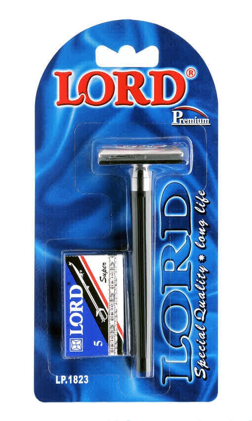 Holicí strojek na klasické žiletky od egyptské značky Lord. Díky plné liště je vhodný pro každodenní holení. Doporučujeme jej i začátečníkům. Délka 112 mm, hmotnost 22g. Baleno v blistru s 1 balením žiletek Lord Super.