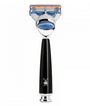 Elegantní holicí strojek Mühle Rytmo na hlavice Gillette Fusion s 5 břity. Rukojeť je vyrobena z leštěné vysoce odolné pryskyřice. Díky propracovanému designu se strojek příjemné drží. Kovové díly jsou vyrobeny z mosazi a pochromované. Dodáváno v dárkové krabičce.