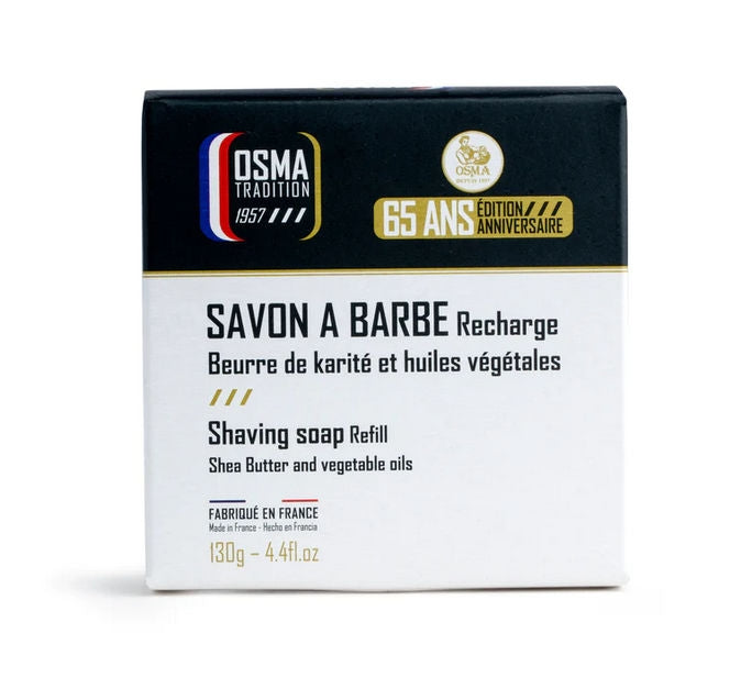 Kvalitní mýdlo na holení (130g) od Osma je z 95% složené z přírodních ingrediencí. Je obohacené o bambucké máslo, které hydratuje pokožku a ulehčuje klouzání holicího strojku při holení. Mýdlo je vyrobené na bázi kokosového a slunečnicového oleje. Kokosový olej zabraňuje praskání pokožky a zajišťuje zdravější vzhled pokožky. Slunečnicový olej zanechává na pokožce ochranný štít proti škodlivému UV záření, zabraňuje podráždění a předčasnému stárnutí pokožky. Díky šetrnému složení je vhodné i pro citlivou pokožku. Vyrobeno v Laboratoires OSMA ve Francii.