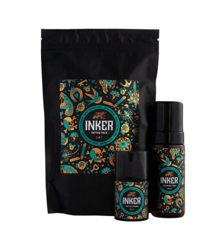 Inker představuje novou úroveň péče o tetování. Sada péče o tetování obsahuje čisticí mýdlo ve formě pěny na tetovanou pokožku a krém pro tetovanou pokožku bohatý na přírodní, vyživující a hydratační složky, který udrží vaše tetování v perfektním stavu. Příjemná a svěží vůně broskve a manga.