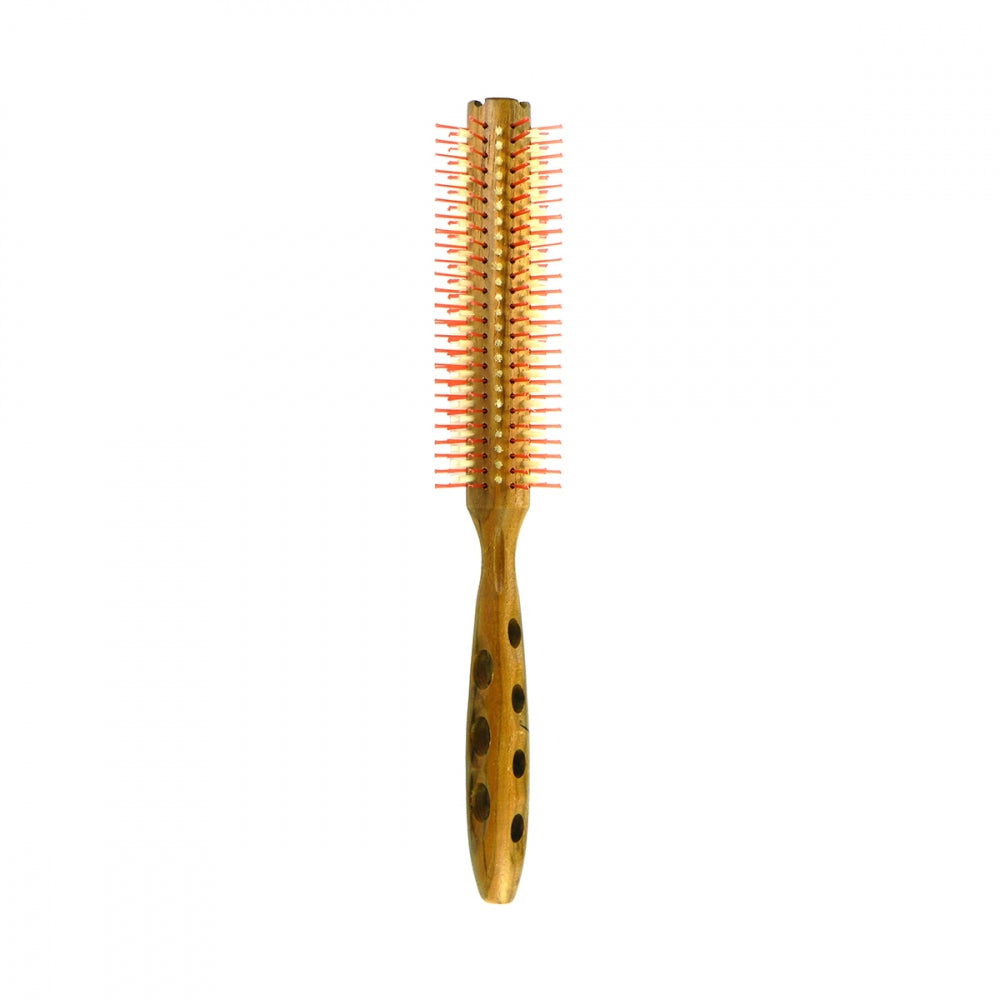Kulatý kartáč Y. S. Park o průměru 34 mm dlouhý 215 mm z teakového dřeva. Ideální pro styling vlnitých vlasů. Má dva druhy štětin - přírodní kančí, které vyhlazují vlasy od kořínků a teplu odolné nylonové, které dodají vlasům objem. Ergonomická rukojeť s větracími otvory zamezuje pocení dlaní a kouzání kartáče. Díky tvaru krku se s kartáčem snadno otáčí.